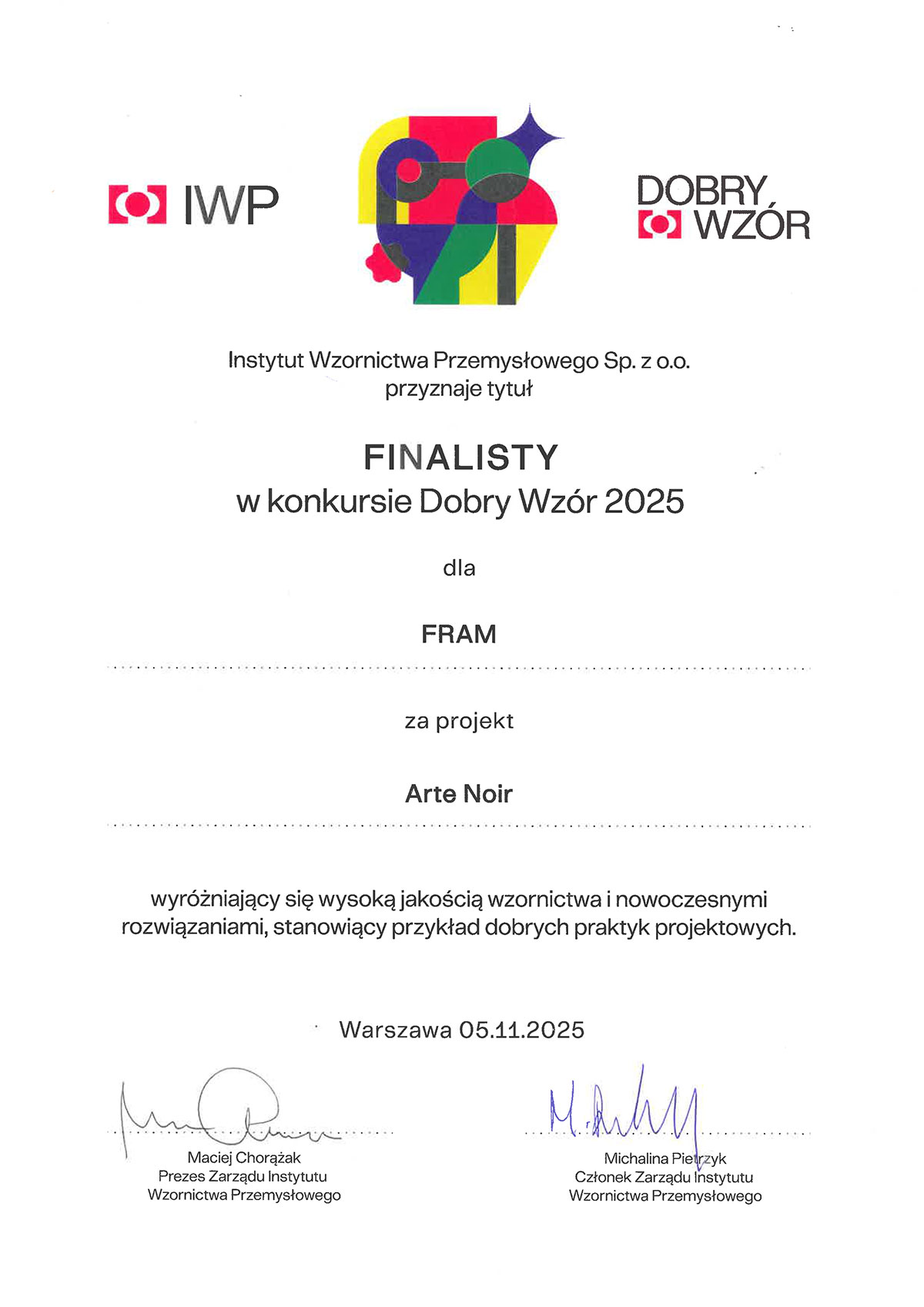 Nasze głośniki Arte Noir znalazły się w gronie finalistów konkursu Dobry Wzór 2025, organizowanego przez Instytut Wzornictwa Przemysłowego.